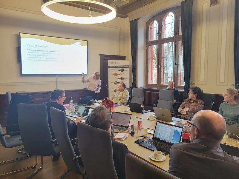 Ein Jahr geht schnell vorbei und so war es schon wieder Zeit für das CONMAR Jahrestreffen. Vom 8.-9. Dezember trafen sich die CONMAR Akteure auf Einladung der Kollegen der Universität Rostock in dem wundervollen und ehrwürdigen Universitätsgebäude. Ansgar Leefken und Sascha Kosleck bereiteten uns einen herzlichen Empfang. Wir waren sehr erfreut, dass wir in diesem Jahr verschiedene externe Gäste zu unserem Jahresmeeting begrüßen konnten: Susanne Korich (Leiterin Geschäftsbereich Marine und Maritime Forschung, Geowissenschaften und Schifffahrt, Projektträger Jülich), Careen Krüger (Wissenschaftliche Referentin, Projektträger Jülich), Elisa Janssen und Nora Klasen (beide Referentinnen am Ministerium für Klimaschutz, Landwirtschaft, ländliche Räume und Umwelt Mecklenburg-Vorpommern), Robert Mollitor (Leiter Munitionsbergung, Mecklenburg Vorpommern) und Eyk-Uwe Pap (General Manager, Baltic Taucher). Als Auftakt unseres Treffens gaben uns Herr Pap und Herr Mollitor einen Bericht zu der jüngst stattgefundenen Munitionspilotbergung in Grossklützhöved/ Boltenhagen in Mecklenburg-Vorpommern. Es war ein Treffen mit wertvollen Diskussionen. Wir freuen uns auf das kommende Jahr mit neuen Herausforderungen und gemeinsamer Forschung.