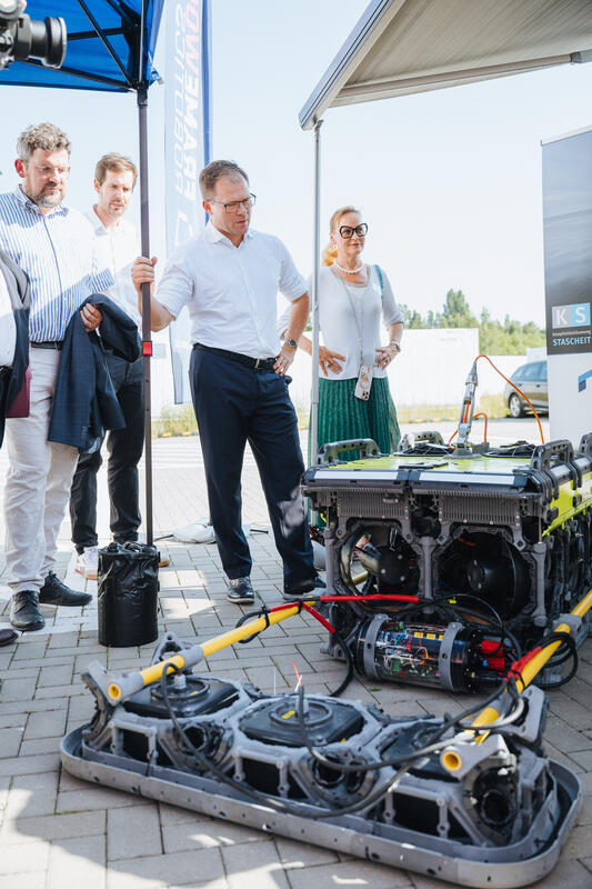 Am 2. Juli 2025 besuchte Bundesumweltminister Carsten Schneider auf Einladung der Landesregierung Mecklenburg-Vorpommerns den Ocean Technology Campus in Rostock. Begleitet wurde er von Ministerpräsidentin Manuela Schwesig und Umweltminister Till Backhaus. Ziel des Besuchs war es, Rostock als möglichen Standort für ein zukünftiges Bundeskompetenzzentrum zur Munitionsbergung in Nord- und Ostsee vorzustellen. Nach einleitenden Grußworten der Ministerpräsidentin und des Bundesministers erhielten die beiden Rostocker Projektpartner aus dem CONMAR-Konsortium die Gelegenheit, ihre aktuelle Forschungsarbeit zu präsentieren: das Leibniz-Institut für Ostseeforschung Warnemünde (IOW), vertreten durch Oliver Zielinski, sowie die Universität Rostock, vertreten durch Sascha Kosleck und Ansgar Leefken. In der anschließenden Diskussion konnten zentrale Forschungsergebnisse vertieft und Fragen zur praktischen Umsetzung erörtert werden. Das große Interesse sowie das fundierte Wissen des politischen Besuchs zur Problematik der Munitionsaltlasten unterstreichen die zunehmende Relevanz des Themas auf bundespolitischer Ebene. Die Beseitigung von Munitionsaltlasten in Nord- und Ostsee ist im Koalitionsvertrag der Bundesregierung als gesamtstaatliche Aufgabe verankert – ein starkes Signal für konkretes Handeln.