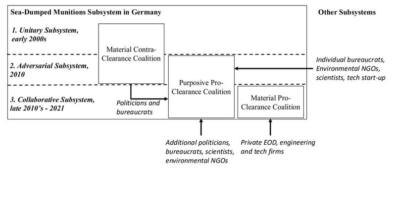 The shift began when a new coalition of environmental actors, authorities, industry, and science formed. These groups initiated scientific work that provided new insights into risks and available technologies. At the same time, they implemented a communication strategy highlighting that dumped munitions pose risks to humans and the environment that needed to be addressed and could be managed through existing technical expertise and clearance capabilities. This gradually led policy towards systematic clearing of munitions dump sites.